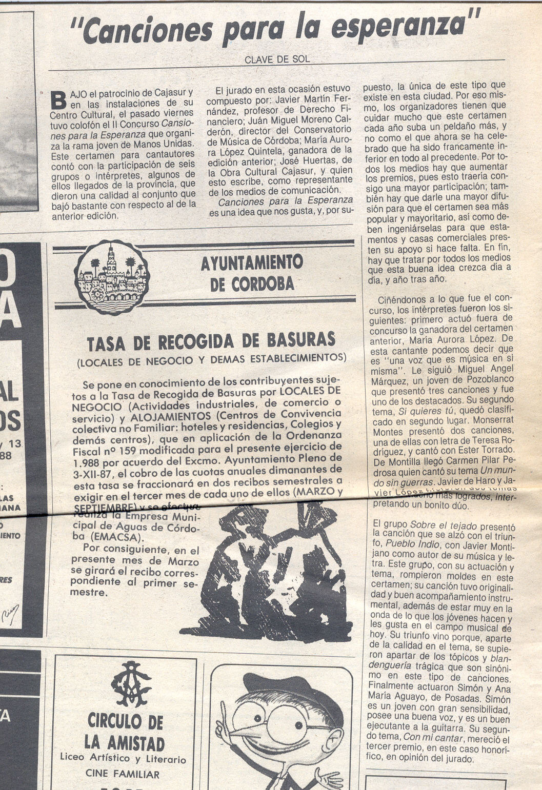 Queda como recuerdo el recorte de prensa del Diario Córdoba del 9 de marzo.